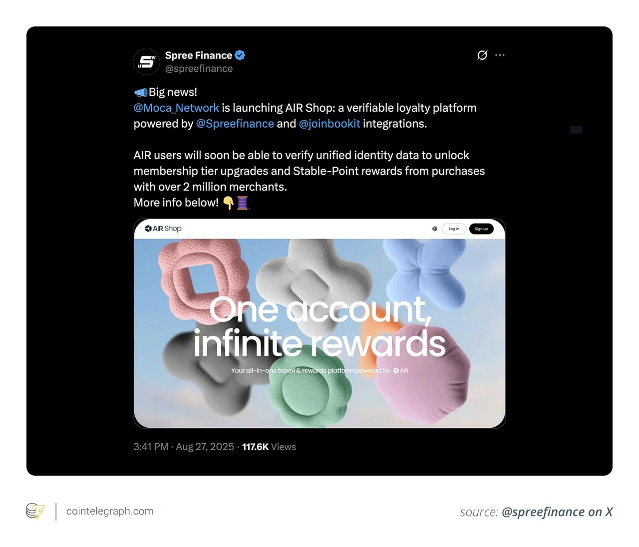 Air Shop, запуск которого запланирован на сентябрь 2025 года, стремится преобразовать программы лояльности, используя торговлю на основе стейблкоинов. Платформа использует Air Kit для безопасной идентификации и многоуровневой верификации участников, предлагая персонализированные вознаграждения. В основе платформы лежат стейбл-поинты (AIR SP) – токены, обеспеченные долларами США и привязанные к стейблкоинам, которые сохраняют свою ценность в отличие от традиционных баллов лояльности. Эти стейбл-поинты можно использовать в более чем 2 миллионах торговых точек на BookIt.com, охватывающих путешествия, розничную торговлю, рестораны и товары класса люкс. В отличие от традиционных программ лояльности с ограничениями на использование или снижением ценности, Air Shop обеспечивает гибкость и совместимость, позволяя пользователям использовать вознаграждения разных брендов. Продавцы получают прозрачный и экономичный способ взаимодействия с клиентами, а потребители — доверие, гибкость и реальную экономическую выгоду.